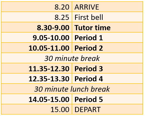 We accept no responsibility for students who are on college premises before 8.20am or ten minutes after the close of school, unless they are here on an authorised and official college activity and in the care of a member of staff.