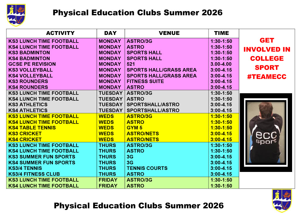 After school Clubs: Students need to wear PE kit (if you don't have PE lesson that day, bring your kit in your bag and change after school)